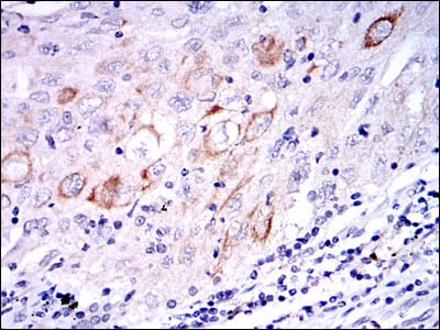- **摘要**: 使用MAP2K7抗体对肝癌组织进行免疫组化染色,发现高表达MAP2K7与患者生存率负相关,提示其可能作为预后标志物。