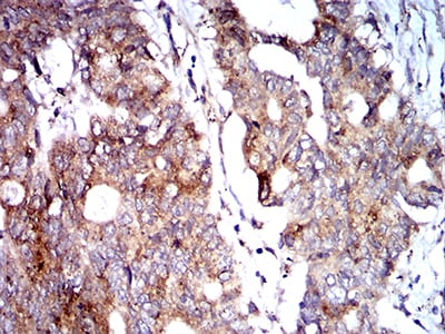 **摘要**:通过免疫组化(使用兔源BNIP3单克隆抗体)分析乳腺癌组织样本,发现BNIP3在三阴性乳腺癌中高表达,且与肿瘤转移和患者生存率下降显著相关,提示其作为预后生物标志物的潜力。