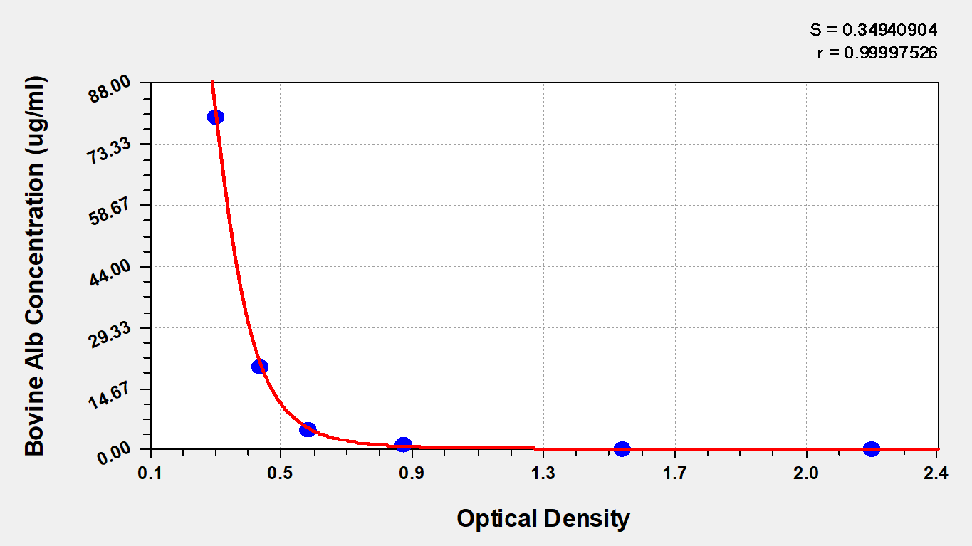 To assess the linearity of the assay, samples were spiked with high concentrations of Bovine Alb in various matrices and diluted with the Sample Diluent to produce samples with values within the dynamic range of the assay. | |||||||||||||||||