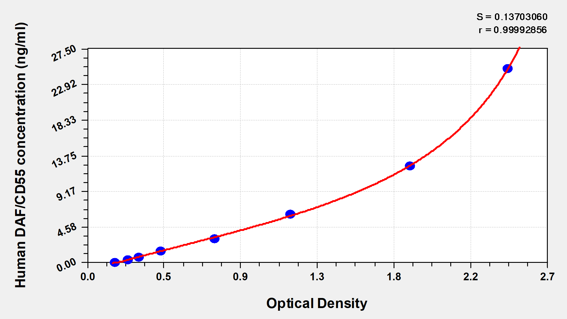 To assess the linearity of the assay, samples were spiked with high concentrations of human DAF/CD55 in various matrices and diluted with the Sample Diluent to produce samples with values within the dynamic range of the assay. | ||||||