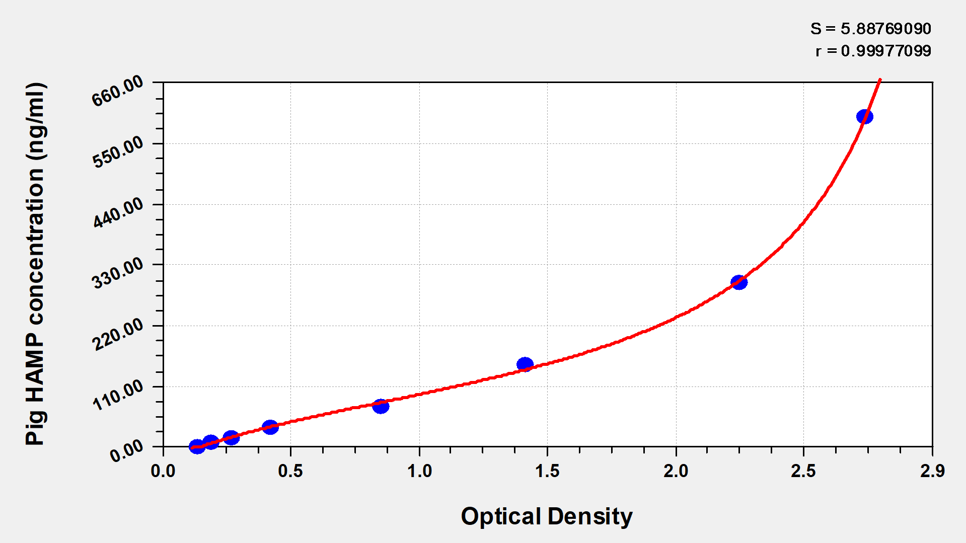 To assess the linearity of the assay, samples were spiked with high concentrations of pig HAMP in various matrices and diluted with the Sample Diluent to produce samples with values within the dynamic range of the assay. | ||||||