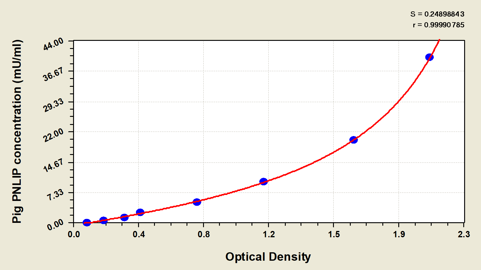 To assess the linearity of the assay, samples were spiked with high concentrations of pig PNLIP in various matrices and diluted with the Sample Diluent to produce samples with values within the dynamic range of the assay. | ||||||