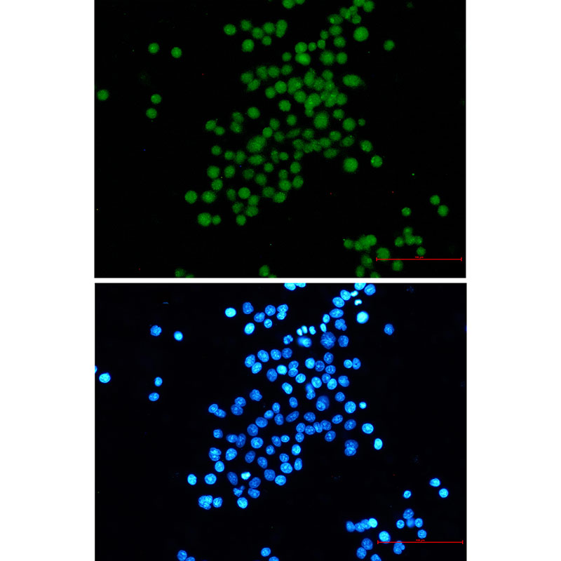 SV40 T Antigen antibodies are essential tools in virology and cancer research. They are widely used to detect T antigen expression in SV40-infected cells or transgenic models expressing the protein. These antibodies enable applications like immunoprecipitation, Western blotting, and immunofluorescence to study viral replication mechanisms, oncogenic transformation, and interactions with host proteins. In cancer biology, SV40 T antigen-expressing cell lines (e.g., COS-7) and transgenic mice are employed to model tumorigenesis, with antibodies serving to validate T antigen presence in experimental systems. Their specificity and reliability make them indispensable for probing SV40 biology and virus-host interactions.