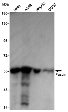 Fascin antibodies are immunological tools used to detect and study fascin, a 55-58 kDa actin-binding protein critical in regulating cytoskeletal dynamics. Fascin (also known as Fascin-1 or p55) is primarily involved in bundling filamentous actin (F-actin) to form parallel arrays, which stabilize cellular protrusions like filopodia and invadopodia. These structures are essential for cell migration, adhesion, and invasion, implicating fascin in processes such as embryonic development, immune response, and cancer metastasis.