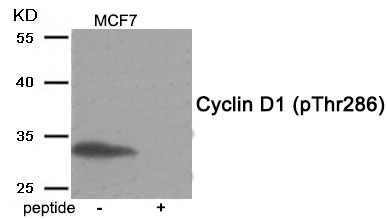 | Immunogen | Peptide sequence around phosphorylation site of threonine 286 (A-C-T(p)-P-T) derived from Human Cyclin D1. |