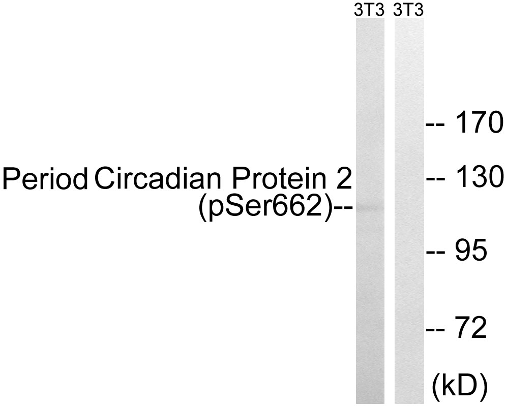 The **Phospho-Ser662-specific PER2 antibody** is a tool designed to detect this phosphorylation event, enabling researchers to study dynamic PER2 regulation in circadian mechanisms. It is widely used in techniques like Western blotting, immunohistochemistry, and immunoprecipitation to assess phosphorylation-dependent PER2 turnover, cellular localization, or interactions under varying conditions (e.g., light exposure, metabolic stress). This antibody has been instrumental in linking circadian disruption to pathologies, including sleep disorders, metabolic syndromes, and cancer, where PER2 dysregulation is implicated. Validated specificity for phosphorylated Ser662 ensures reliable detection, though proper controls (e.g., phosphatase treatment) are recommended to confirm signal authenticity. Its applications extend to both in vitro and in vivo models, advancing our understanding of circadian biology and its intersection with disease pathways.