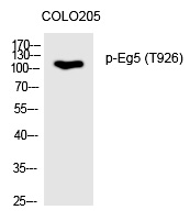 The Eg5 (Phospho-Thr926) antibody is a specialized tool used to detect the phosphorylation status of the kinesin-like protein Eg5 (KIF11) at threonine 926. a critical post-translational modification involved in mitotic regulation. Eg5. a member of the kinesin-5 family, plays an essential role in forming and maintaining the bipolar mitotic spindle by generating antiparallel microtubule sliding forces during mitosis. Its activity is tightly regulated through phosphorylation at specific residues, including Thr926. which is believed to modulate Eg5’s motor function, localization, or interactions with other mitotic components. Phosphorylation at this site is associated with cell cycle progression, particularly during metaphase, and may be mediated by kinases such as CDK1 or Plk1.