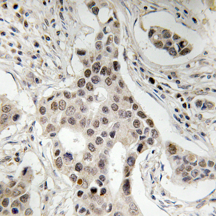 Studies suggest that Ser736 phosphorylation may influence NCOA2’s role in cancer progression, such as in breast or prostate cancer, where it promotes cell proliferation and survival. The antibody is widely used in techniques like Western blotting, immunohistochemistry, or immunofluorescence to study NCOA2 activation dynamics in response to extracellular signals (e.g., growth factors, hormones) or under pathological conditions. Researchers also employ it to explore how kinase pathways (e.g., MAPK, AKT) regulate NCOA2 activity and its crosstalk with oncogenic processes. By targeting this specific phosphorylation site, the antibody helps elucidate mechanisms underlying transcriptional deregulation in diseases and potential therapeutic targeting of coactivator-driven pathways.