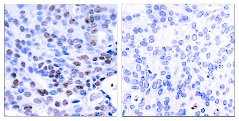 The NF-κB-p105/p50 (Ab-337) antibody is designed to detect specific isoforms of the NF-κB (nuclear factor kappa-light-chain-enhancer of activated B cells) transcription factor family, particularly targeting the p105 precursor and its processed subunit p50. NF-κB proteins play pivotal roles in regulating immune responses, inflammation, cell survival, and proliferation by controlling the expression of genes involved in these processes. The p105 protein (encoded by the NFKB1 gene) serves as both a precursor for p50 and an IκB-like inhibitor, retaining NF-κB complexes in the cytoplasm under basal conditions. Proteasomal processing of p105 removes its C-terminal inhibitory domain, generating the mature p50 subunit, which can form homodimers or heterodimers (e.g., with RelA/p65) to modulate DNA binding and transcriptional activity.