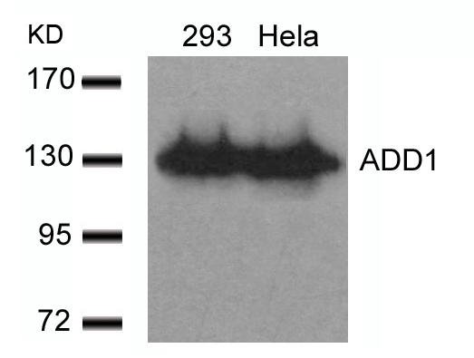 The ADD1 antibody (Ab-726) is a widely used research tool designed to detect endogenous ADD1 protein levels in human, mouse, and rat tissues. As a rabbit-derived polyclonal antibody, it recognizes specific epitopes in the N-terminal region of ADD1. enabling applications in Western blotting (WB), immunohistochemistry (IHC), and immunofluorescence (IF). Its validation in multiple experimental models has made it valuable for studying hypertension-related mechanisms, cancer cell motility, and neurological conditions associated with synaptic membrane instability. Recent studies employing Ab-726 have helped elucidate ADD1's role in chemotherapy resistance and its potential as a biomarker in certain carcinomas. Proper validation using knockout controls remains essential due to potential cross-reactivity with other adducin isoforms.
