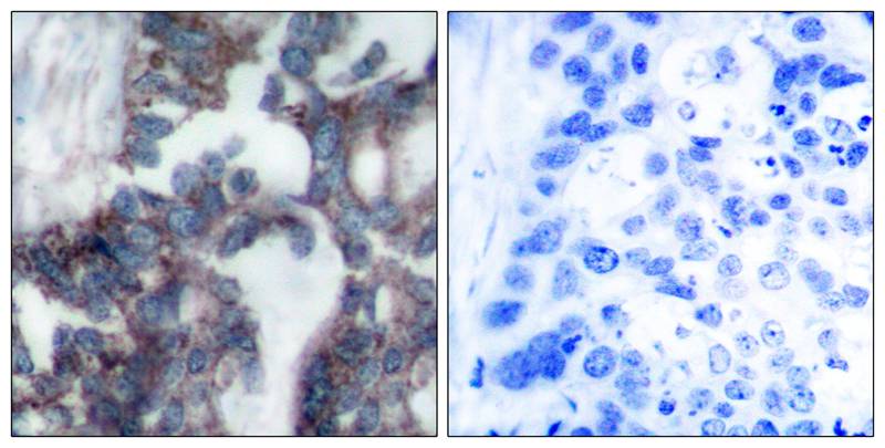 p70 S6 Kinase (p70S6K), also known as ribosomal protein S6 kinase beta-1 (RPS6KB1), is a serine/threonine kinase critical in regulating cell growth, proliferation, and survival. It functions downstream of the PI3K/AKT/mTOR signaling pathway, which integrates nutrient and energy status to control protein synthesis. Phosphorylation of p70S6K at specific residues, such as Thr-424 (human)/Thr-421 (murine), is essential for its activation. This phosphorylation event, often detected using the p70 S6 Kinase (Ab-424) antibody, occurs in the autoinhibitory domain and facilitates kinase activation by relieving intramolecular interactions.