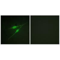 The p38 MAPK (Ab-322) antibody is a phospho-specific monoclonal antibody targeting the mitogen-activated protein kinase p38α (MAPK14) at tyrosine residue 322 (Tyr322). This phosphorylation site is critical for p38 MAPK activation, a key signaling pathway involved in cellular responses to stress, inflammation, apoptosis, and cytokine regulation. The p38 MAPK family (α, β, γ, δ isoforms) is activated by diverse stimuli, including oxidative stress, UV radiation, and pro-inflammatory cytokines, leading to downstream phosphorylation of transcription factors and kinases.